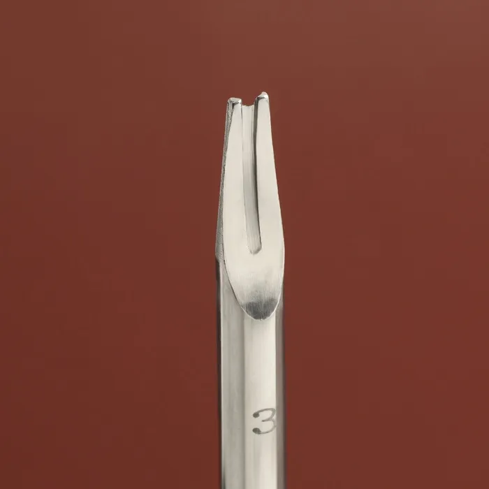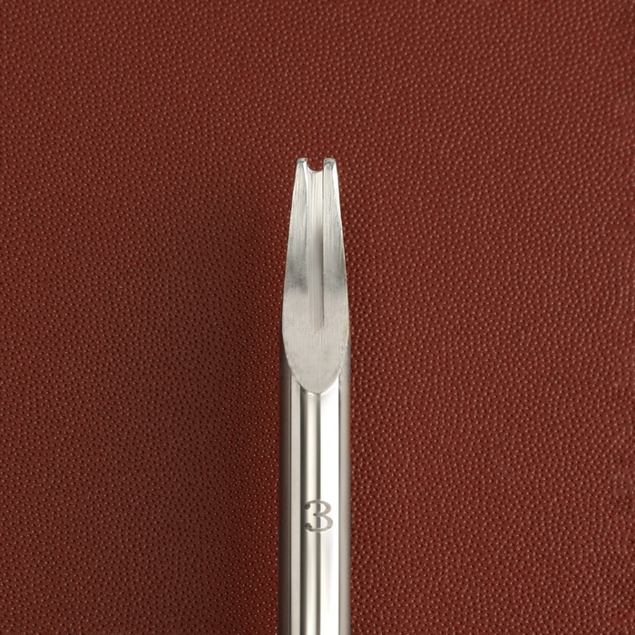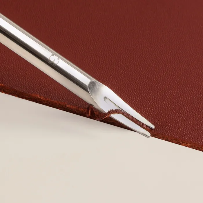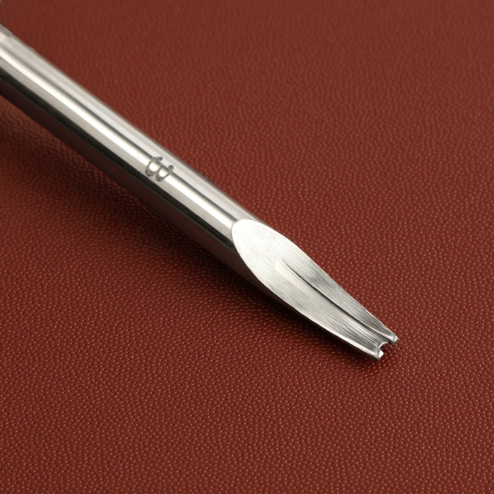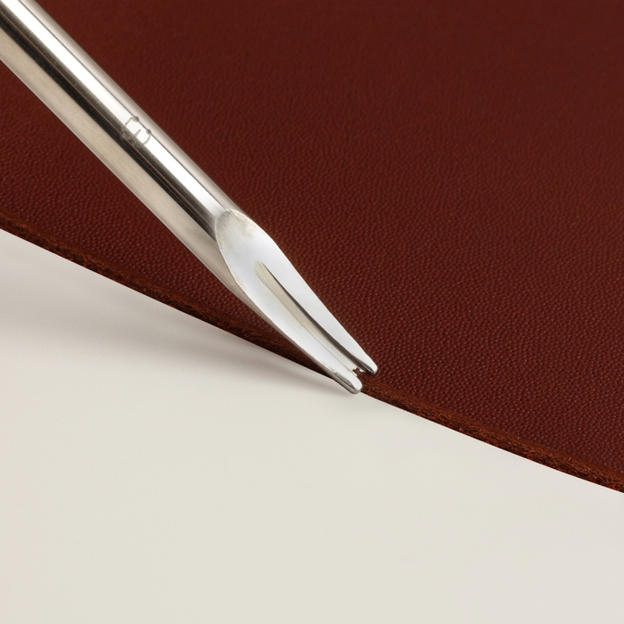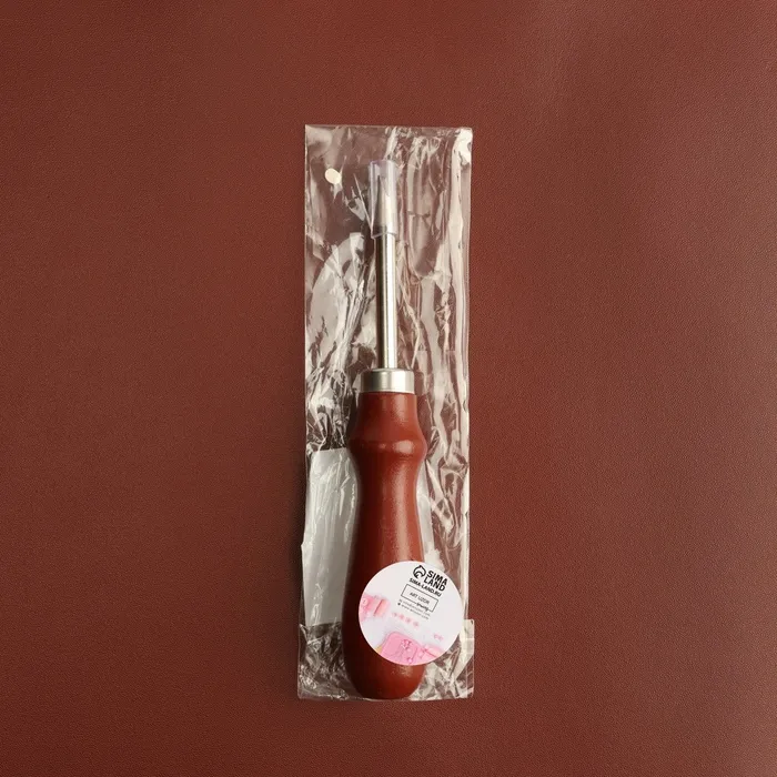 Торцбил (кромкорез) №3 - инструмент, предназначенный для работы с кожей. Используется для снятия фаски с торца кожи (скругления краёв). Имеет красную деревянную ручку удобной формы и металлическое режущее полотно 1 мм. Позволяет работать с натуральной кожей толщиной 1,5 - 2,5 мм.