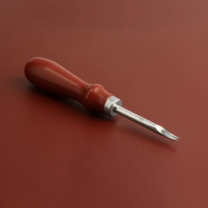 Торцбил (кромкорез) №5 - инструмент, предназначенный для работы с кожей. Используется для снятия фаски с торца кожи (скругления краёв). Имеет красную деревянную ручку удобной формы и металлическое режущее полотно 1,5 мм.