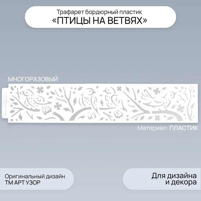 Трафарет бордюрный пластик «Птицы на ветвях», 60×12 см — Характеристики