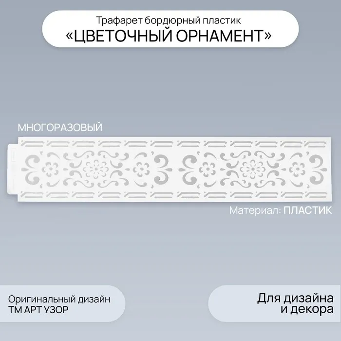 Трафарет бордюрный пластик «Цветочный орнамент», 60×12 см — Характеристики