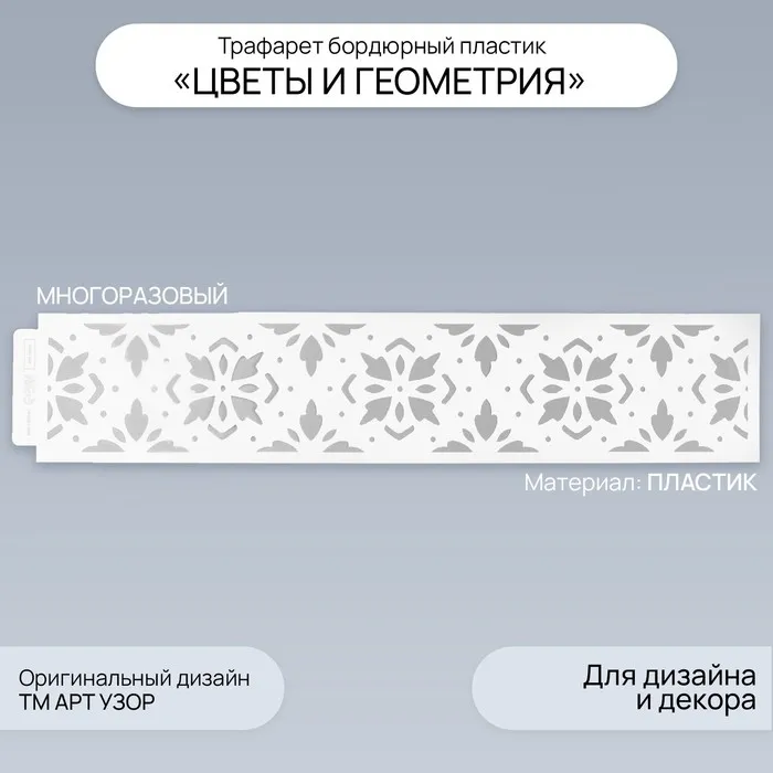 Трафарет бордюрный пластик «Цветы и геометрия», 60×12 см — Характеристики