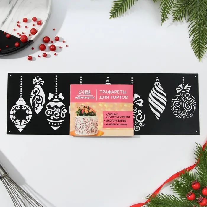 На боковых трафаретах сделаны специальные отверстия, чтобы закрепить трафарет на изделии и не придерживать рукой, украшать Ваше кондитерское либо любое другое изделие.