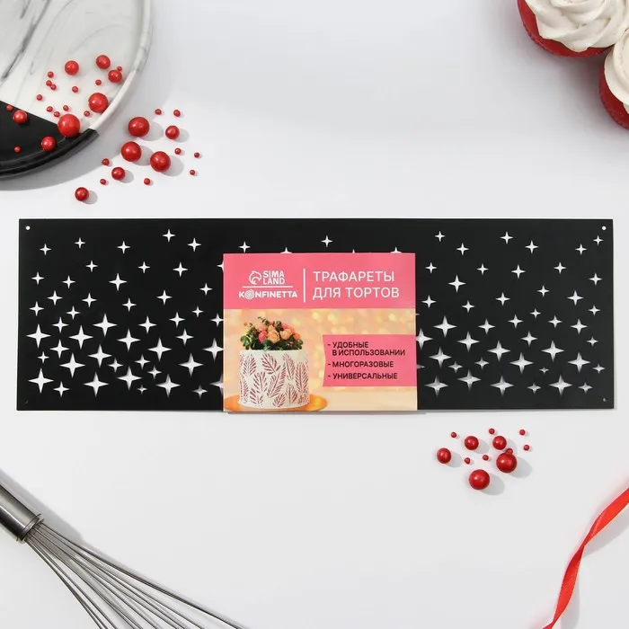 На боковых трафаретах сделаны специальные отверстия, чтобы закрепить трафарет на изделии и не придерживать рукой, украшать Ваше кондитерское либо любое другое изделие.
