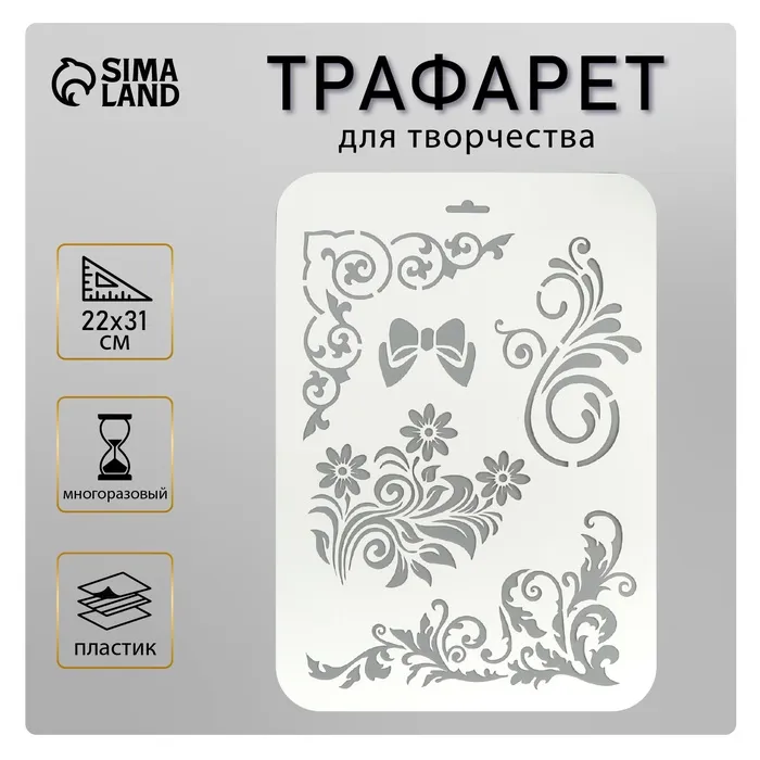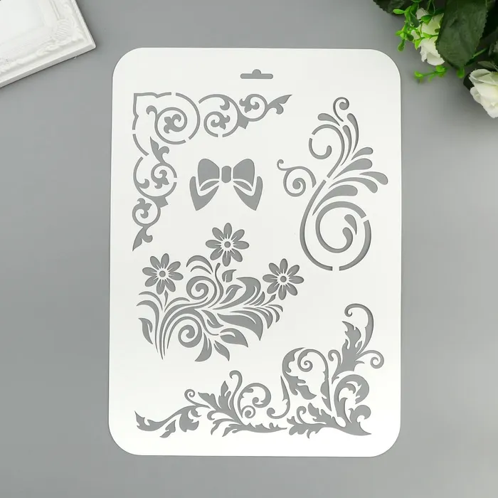 Трафарет для творчества «Бантик, цветы, узоры», пластик, 22×31 см — Характеристики