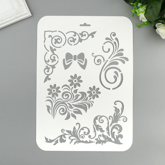 Трафарет для творчества «Бантик, цветы, узоры», пластик, 22×31 см