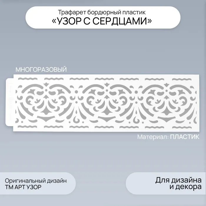 Трафарет для творчества бордюрный «Узор с сердцами», пластик, 40×12 см — Характеристики