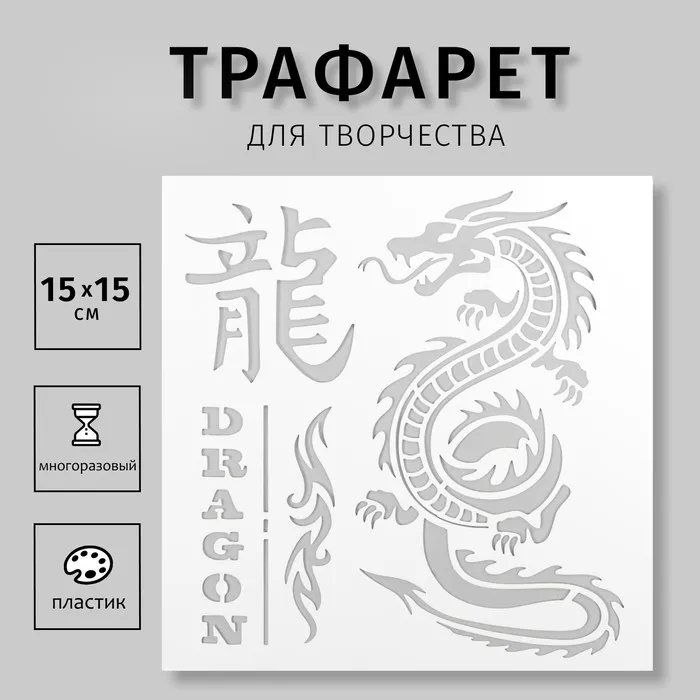Трафарет для творчества «Дракон», для тату, пластик, 15×15 см — Характеристики