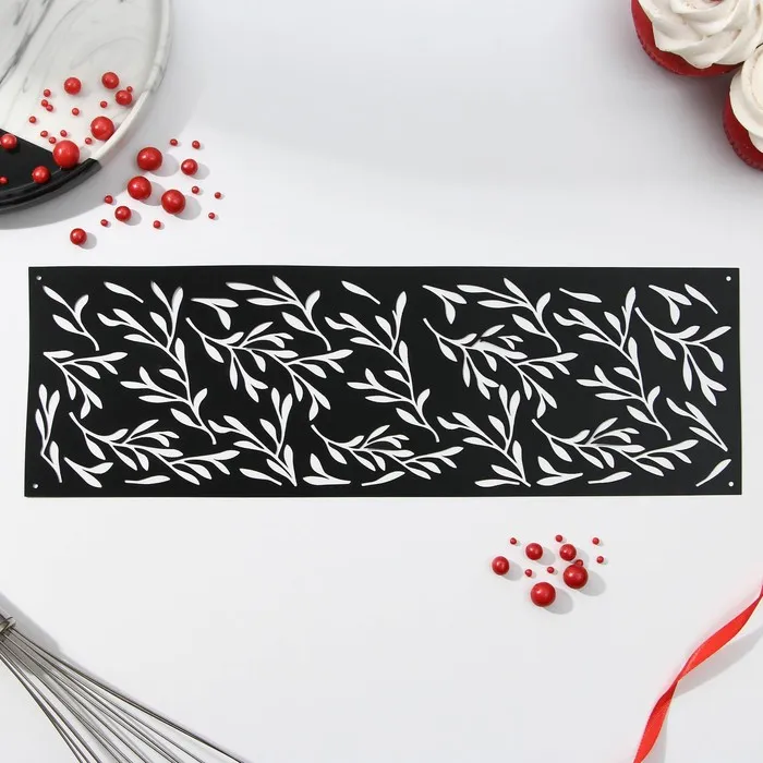 На боковых трафаретах сделаны специальные отверстия, чтобы закрепить трафарет на изделии и не придерживать рукой, украшать Ваше кондитерское либо любое другое изделие.