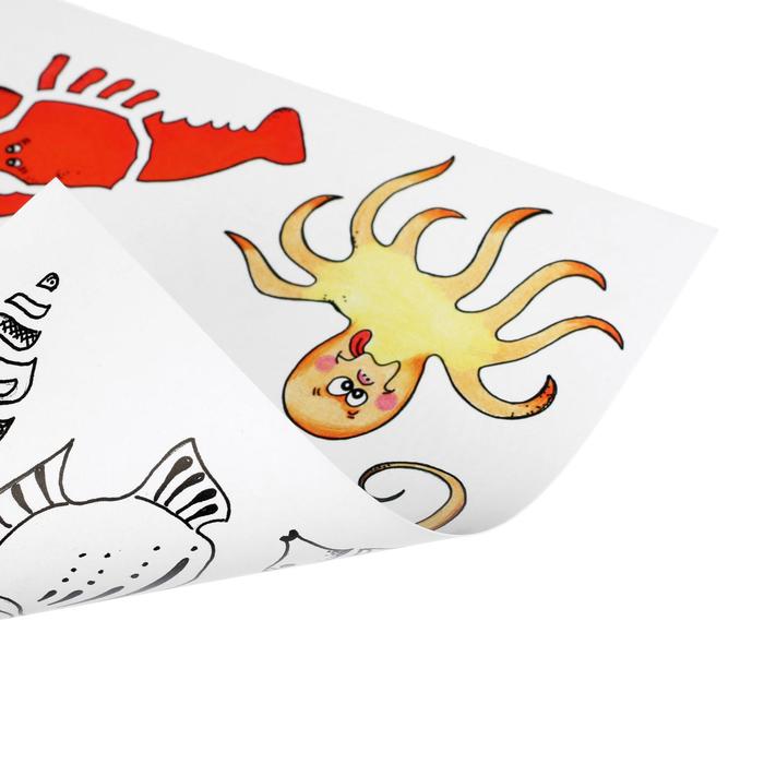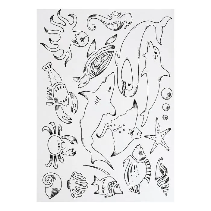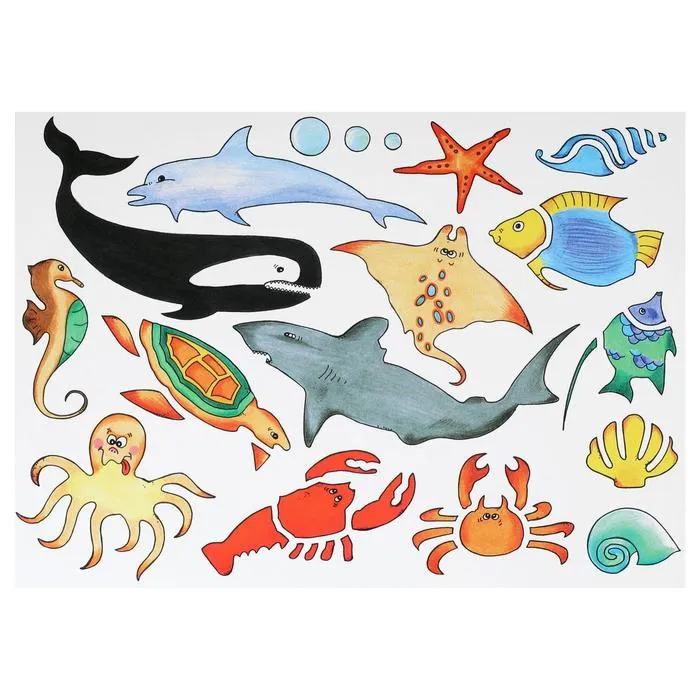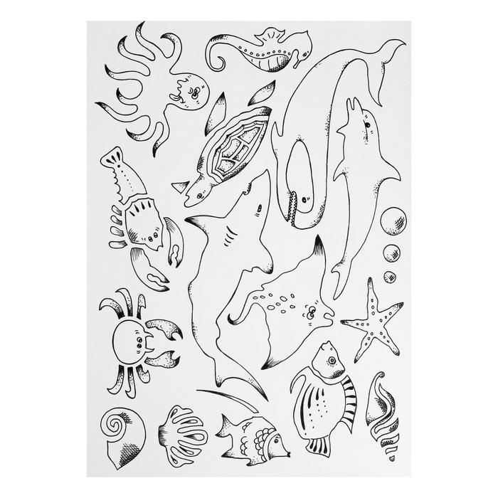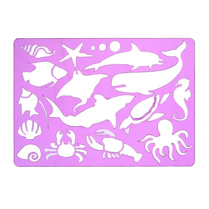 Пластиковый шаблон для рисования – ОКЕАН (мотив “морские животные”), размеры 265 x 187 мм, толщина 2 мм; упакован в полиэтиленовый пакет с вешалкой. Прозрачный фиолетовый цвет. Шаблон используется для копирования фильма на бумагу.