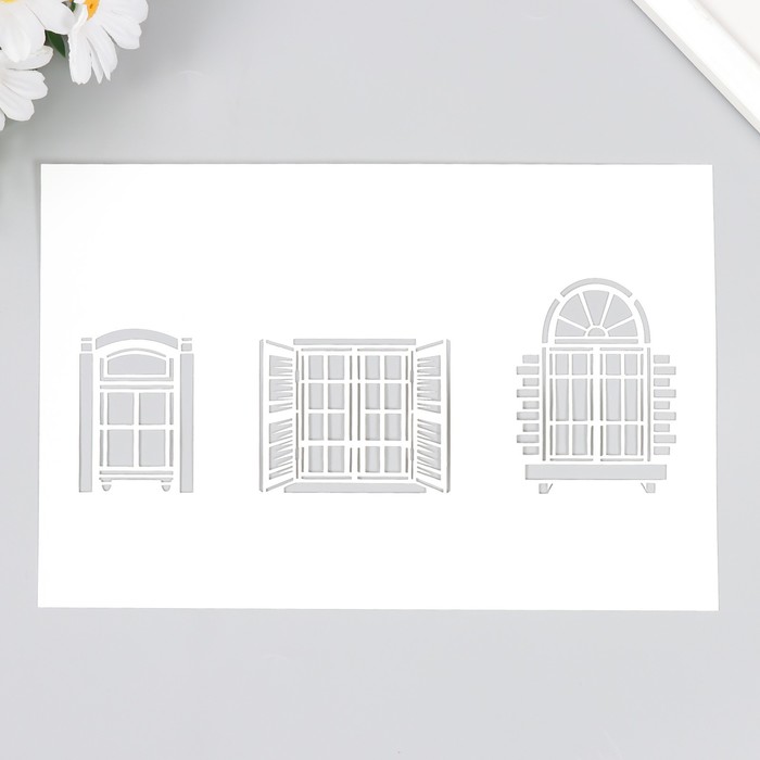 Пластиковый трафарет для творчества «Окна», шаблон, 24×16 см