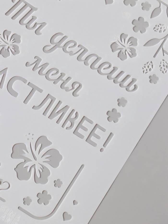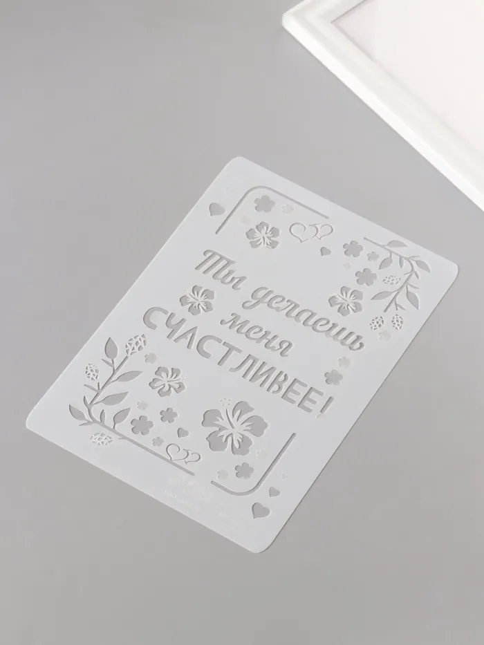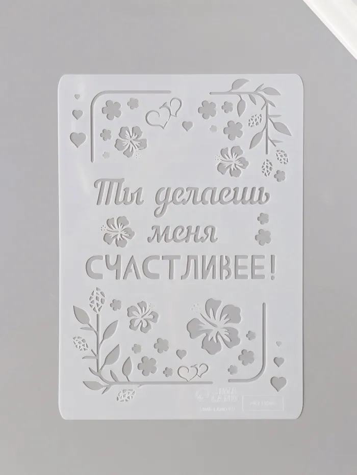 Трафарет пластик А5 «Листья. Ты делаешь меня счастливее», 14.8×21 см — Характеристики