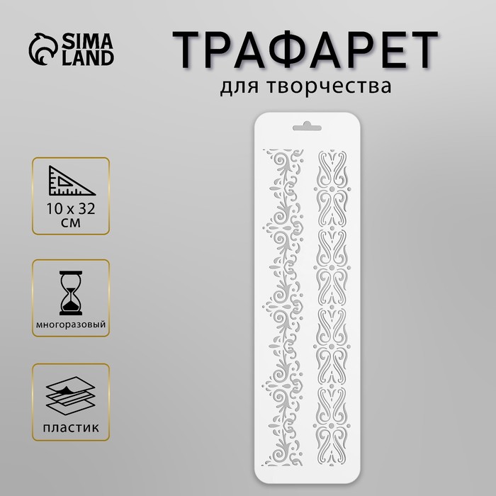 Пластиковый трафарет для творчества «Бордюр 27», шаблон, 10×32 см