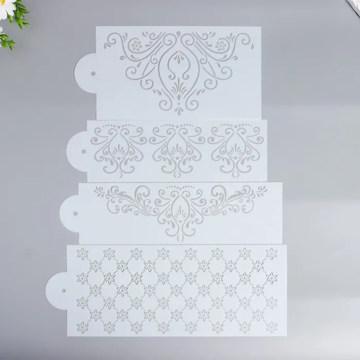 Трафарет пластик бордюрный «Витиеватые узоры», набор 4 шт., 14.9×29.2 см; 10×31.7 см; 10×35.4 см; 15×37.9 см