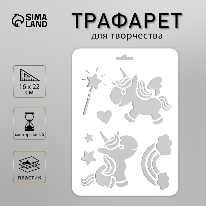 Пластиковый трафарет для творчества «Единорожки», 16×22 см