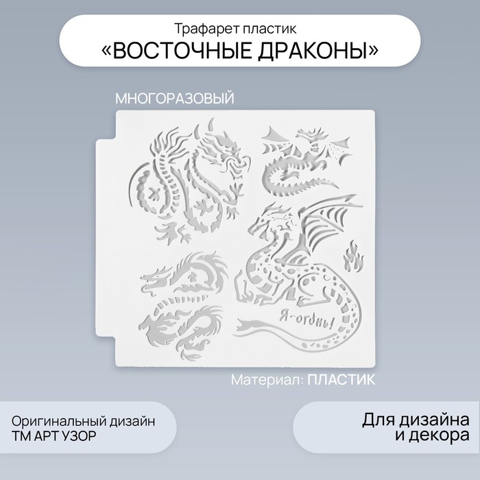 Трафарет пластик «Восточные драконы», 13×13 см