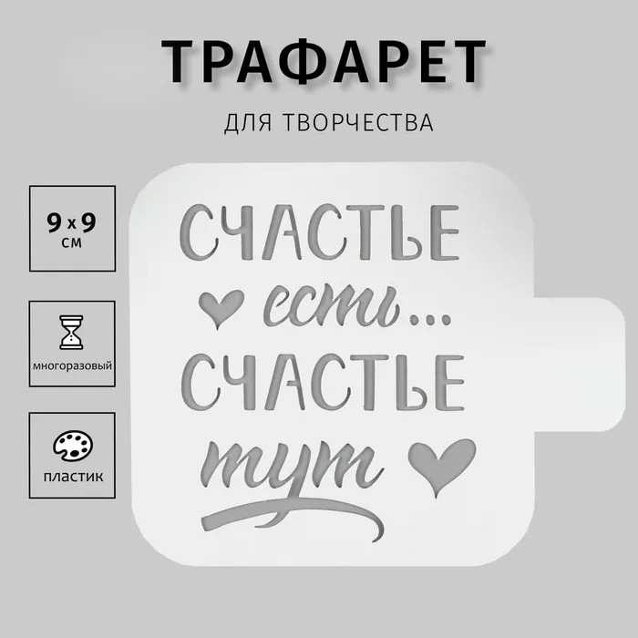 Трафарет пластик "Счастье тут" 9х9 см — Характеристики