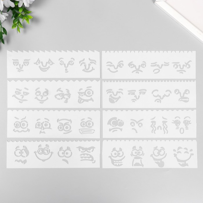 Трафарет с фигурным краем «Рожицы», набор 8 шт., 18.3×5.5 см