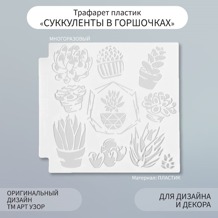 Трафарет пластик «Суккуленты в горшочках», 13×13 см
