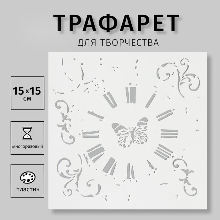 Трафарет пластик «Винтажные часы и бабочка», 15×15 см