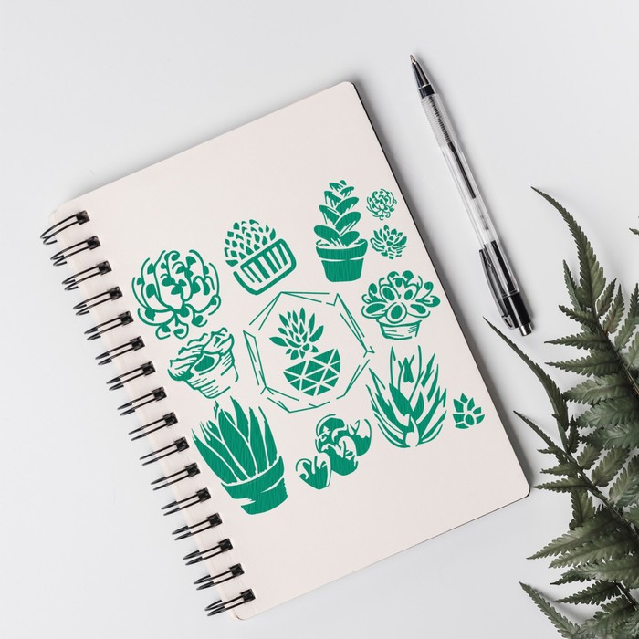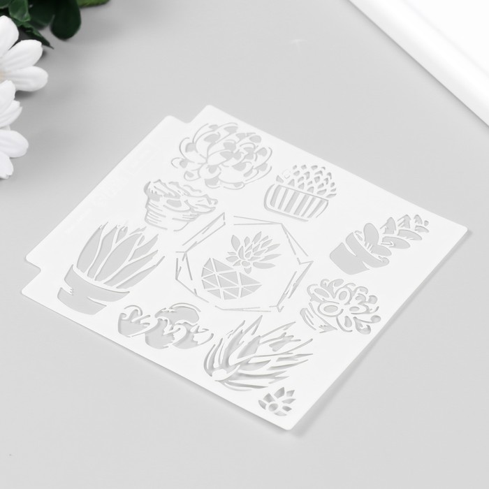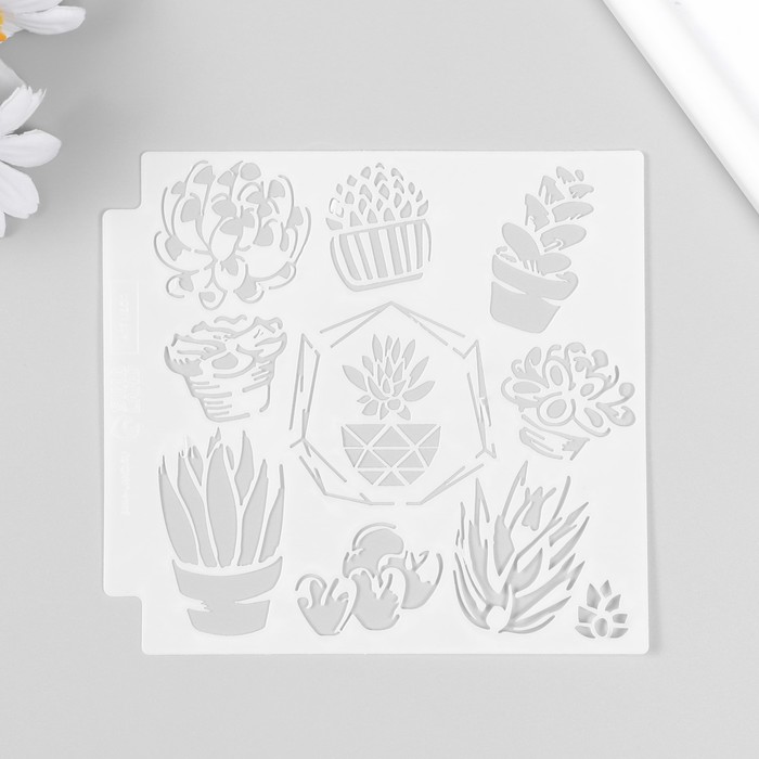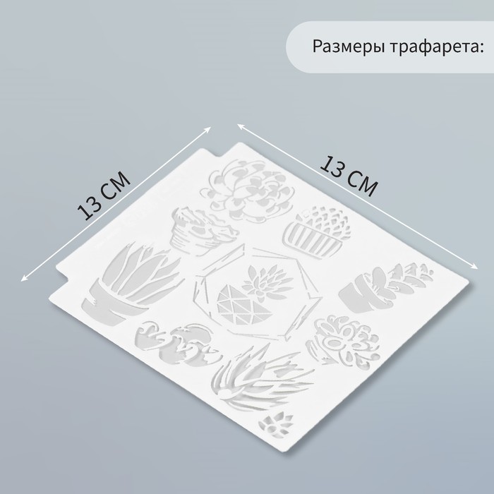 Трафарет пластик «Суккуленты в горшочках», 13×13 см — Характеристики