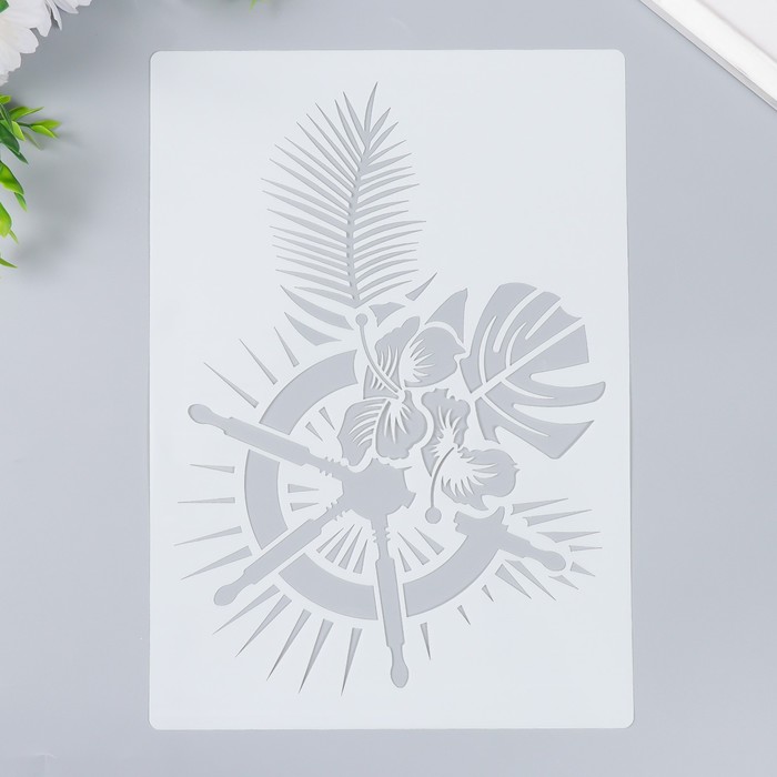 Пластиковый трафарет для творчества «Штурвал и пальмовые листья», шаблон, 29.7×21 см