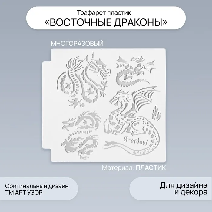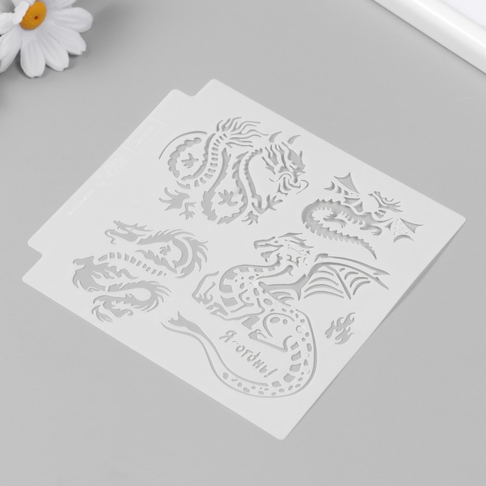 Трафарет пластик «Восточные драконы», 13×13 см — Характеристики