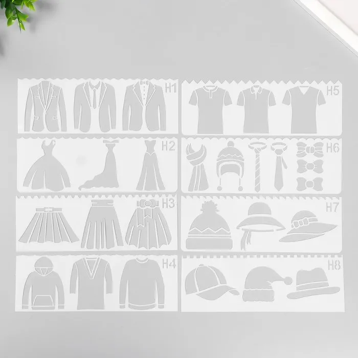 Трафарет с фигурным краем «Гардероб», набор 8 шт., 17×6 см — Характеристики
