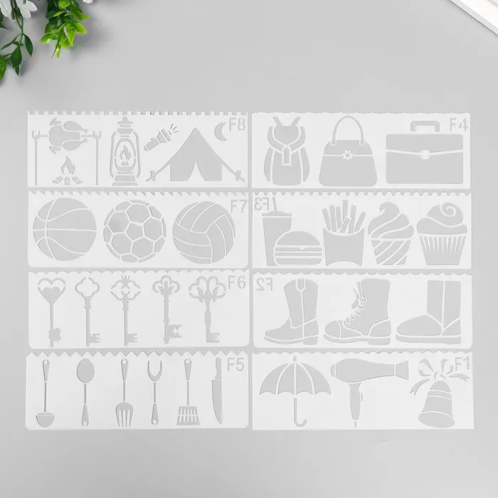 Трафарет с фигурным краем «Походный набор», набор 8 шт., 17×6 см