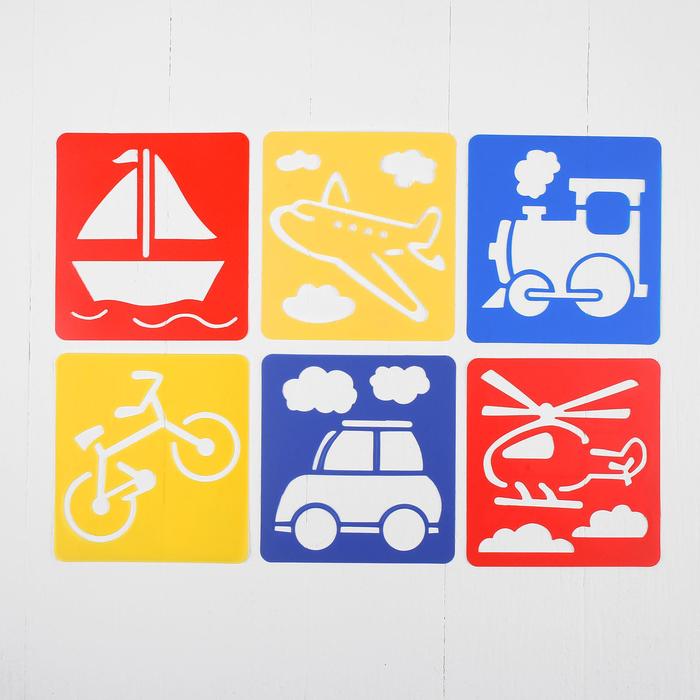 Трафареты «Транспорт, земной, воздушный, морской» лист бумаги, набор 6 шт. — Характеристики