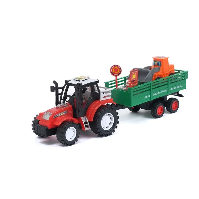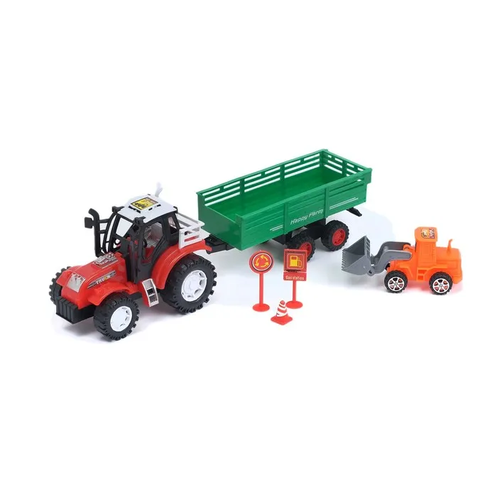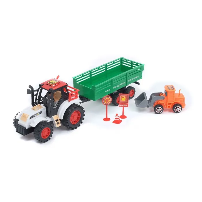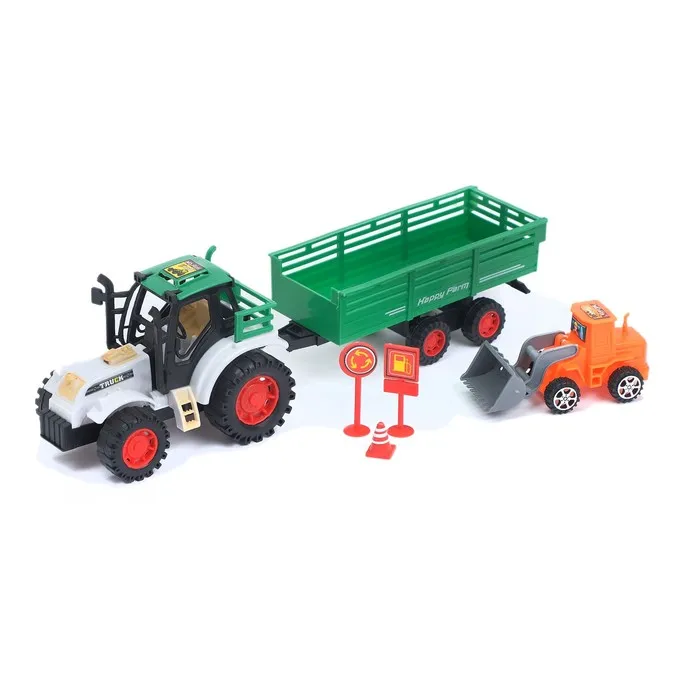 - Трактор и прицеп выполнены из прочного и безопасного пластика.