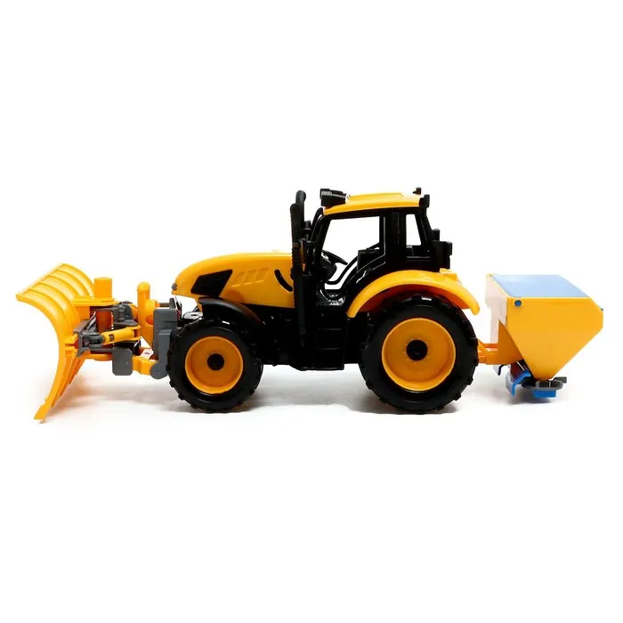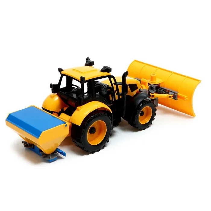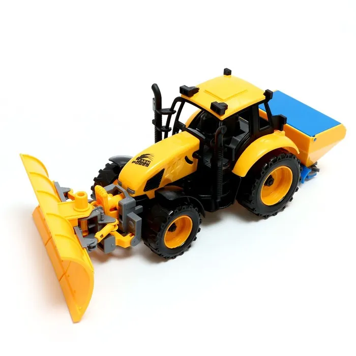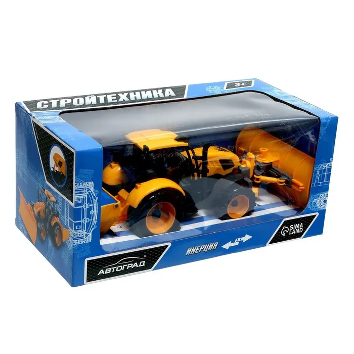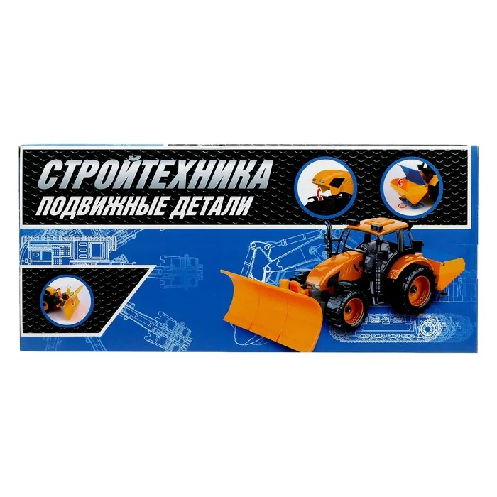 С инерционным трактором «Стройтехника» ребёнок представит себя профессиональным водителем спецтранспорта. У техники два подвижных ковша — с их помощью можно захватывать и перевозить небольшие предметы.