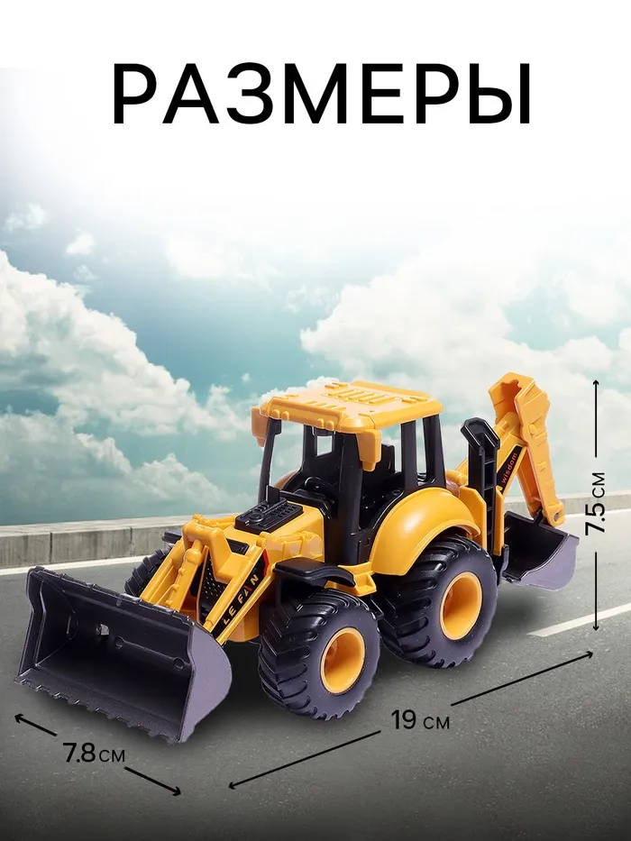 Инерционный трактор «Стройка» — увлекательная и полезная игрушка для детей. Этот трактор оснащён инерционным механизмом: достаточно отвести его назад и отпустить, чтобы он самостоятельно поехал вперёд. У игрушки два подвижных ковша.