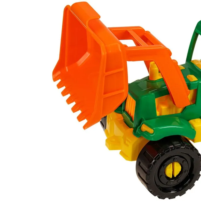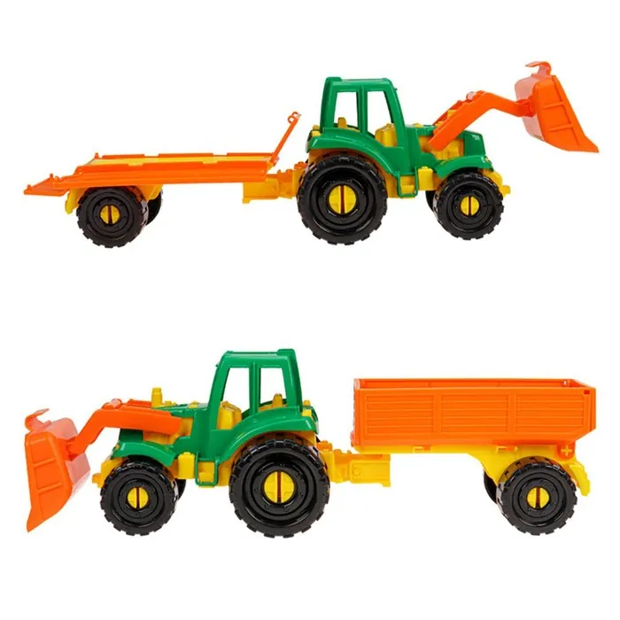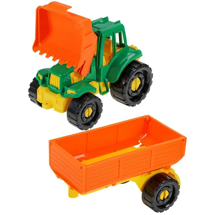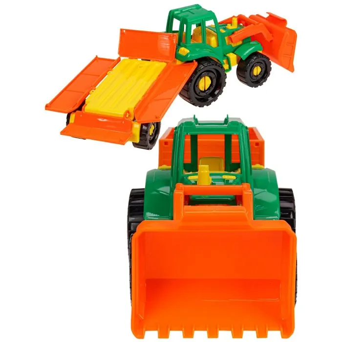 Этот яркий фермерский трактор с ковшом и прицепом станет отличным помощником для юных агрономов! В комплекте — прочный трактор в оранжево-зелёных тонах, готовый к сельскохозяйственным работам. Трактор оснащён подвижным ковшом для выполнения различных задач и прицепом для перевозки материалов и грузов. Эта игрушка идеальна для детей, желающих научиться управлять техникой и создавать свои собственные сельскохозяйственные приключения.