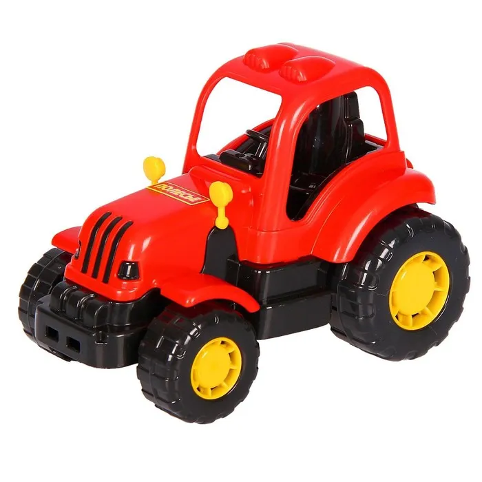 Трактор — это незаменимый вид техники на любой ферме. Благодаря большим пластиковым колёсам игрушка подойдёт для развлечений дома и на улице.