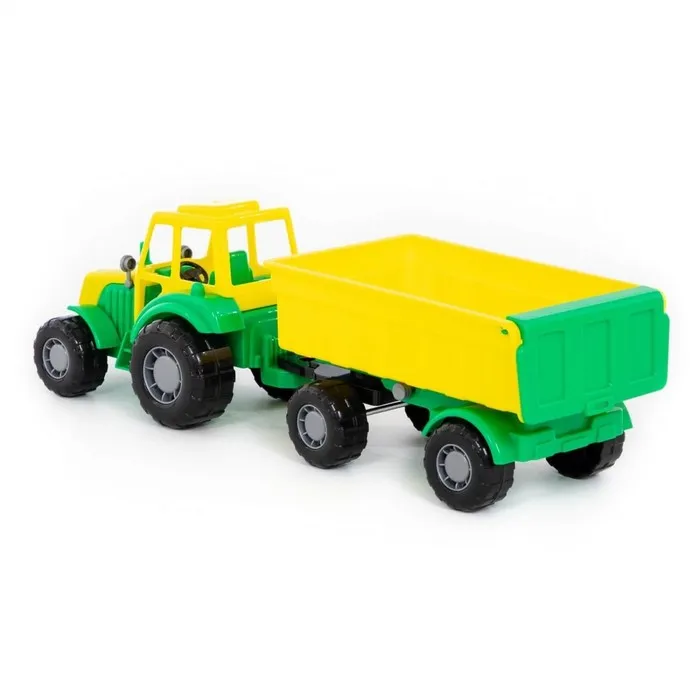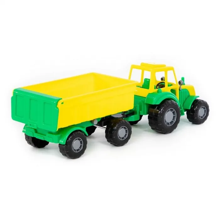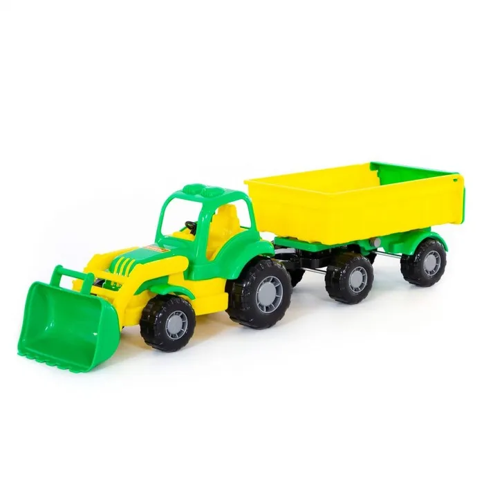 Трактор с прицепом «Мастер» – это яркая и функциональная игрушка, которая перенесёт ребёнка в мир сельскохозяйственных работ. Стильный дизайн делает её привлекательной для игр как дома, так и на улице. Вместительный прицеп с широкими бортами добавляет реалистичности и позволяет перевозить игрушки или другие предметы.