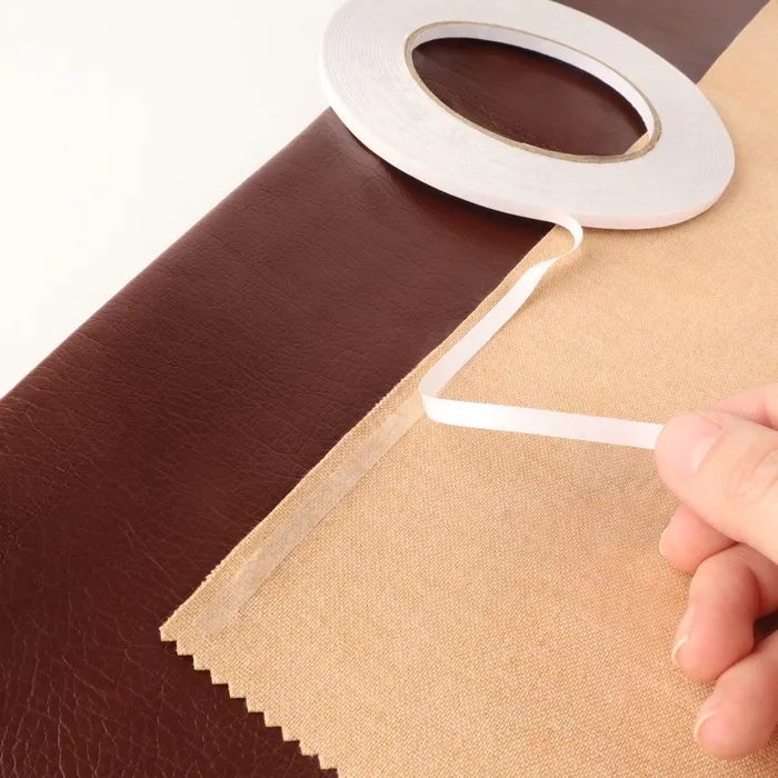 Трансфер для кожи — это специальная двусторонняя липкая прозрачная лента. Она используется для соединения деталей кожаных изделий вместо предварительного смётывания ручной иглой, которое в работе с кожей неприменимо. Отличается от обычной двусторонней канцелярской ленты большей прочностью и меньшей толщиной.