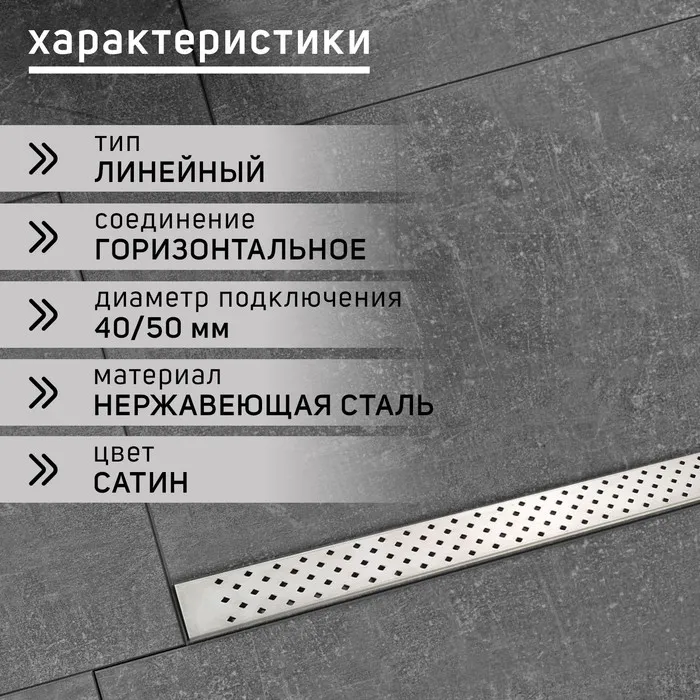 Трап ZEIN, c фланцем свободного вращения 360°, 7×120 см, d=40/50 мм, нерж. сталь, сатин