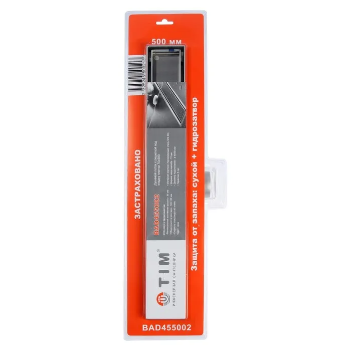 Трап TIM BAd=455002, 70×500 мм, под плитку, гидро+сухая защита от запаха — Характеристики