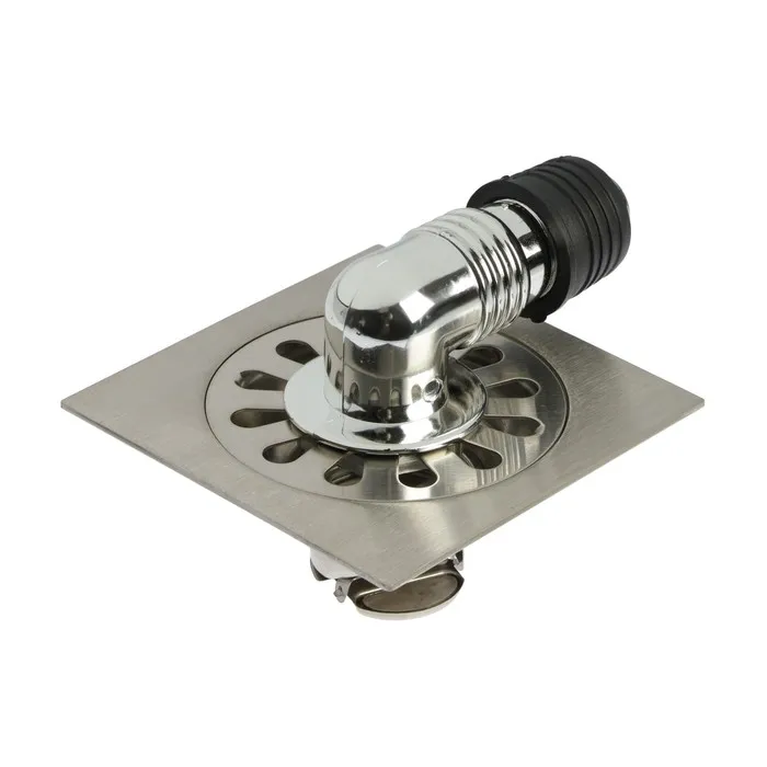 Трап ZEIN engr, 100×100 мм, вертикальный, с патрубком, нержавеющая сталь, хром