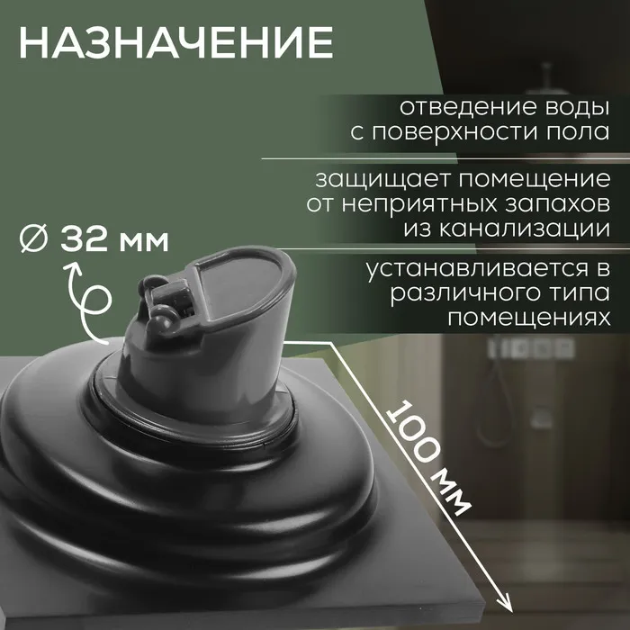 Трап ZEIN engr, 100х100 мм, вертикальный, d=32 мм, нержавеющая сталь, черный — Характеристики