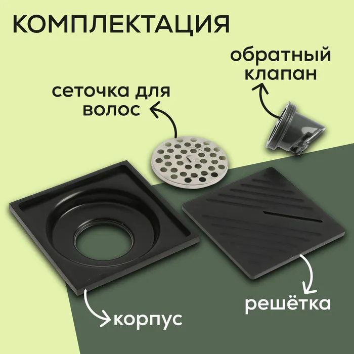Трап AFLORN AF20510F-10, 100×100 мм, горизонтальный, латунь, черный