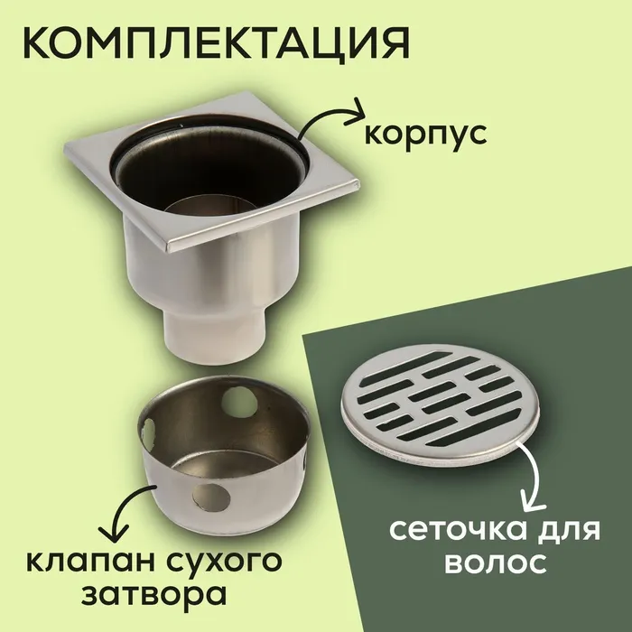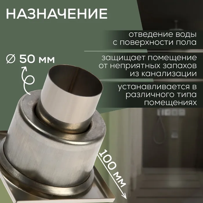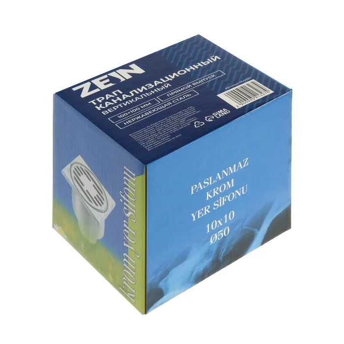Трап ZEIN engr, 100×100 мм, вертикальный, d=50 мм, прямой выпуск, нержавеющая сталь — Характеристики