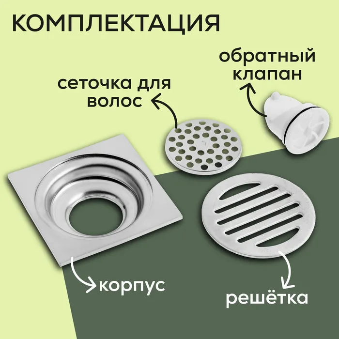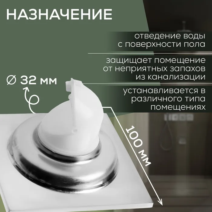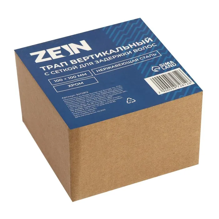 Трап ZEIN engr, 100×100 мм, вертикальный, с сеткой для задержки волос, нержав сталь, хром — Характеристики