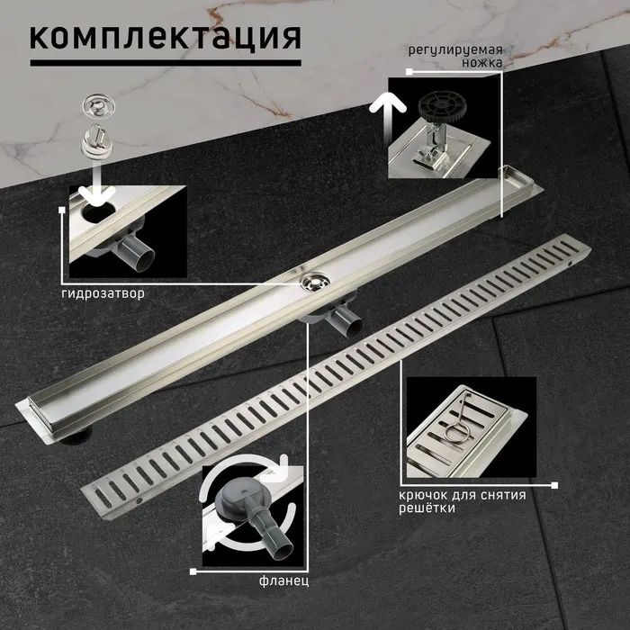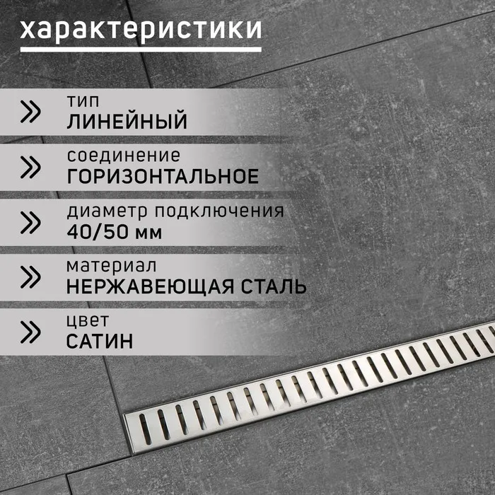 Трап ZEIN engr, c фланцем свободного вращ 360°, 7×100 см, d=40/50 мм, нерж сталь, сатин — Характеристики
