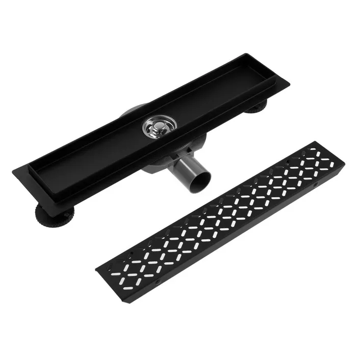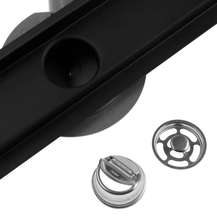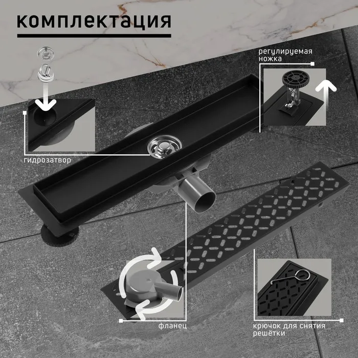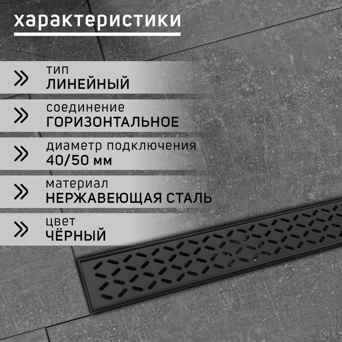Трап ZEIN engr, c флaнцeм свободного вращ 360°, 7×40 см, d=40/50 мм, нерж сталь, черный — Характеристики