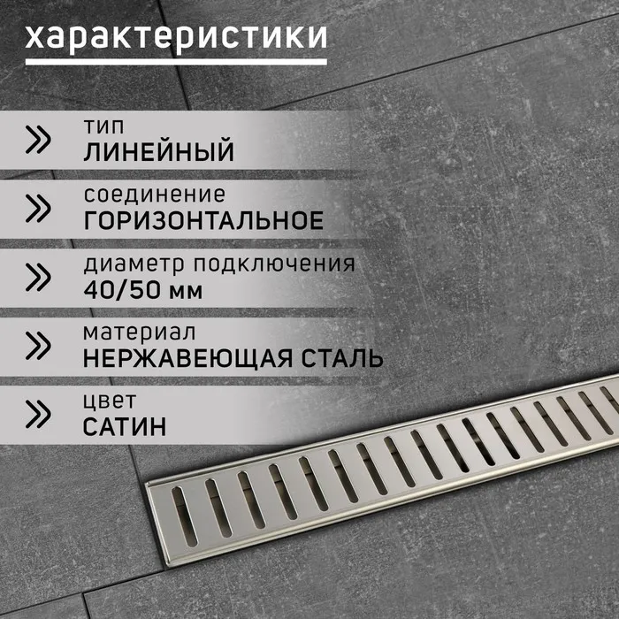 Трап ZEIN engr, c флaнцeм свободного вращ 360°, 7×90 см, d=40/50 мм, нерж сталь, сатин — Характеристики