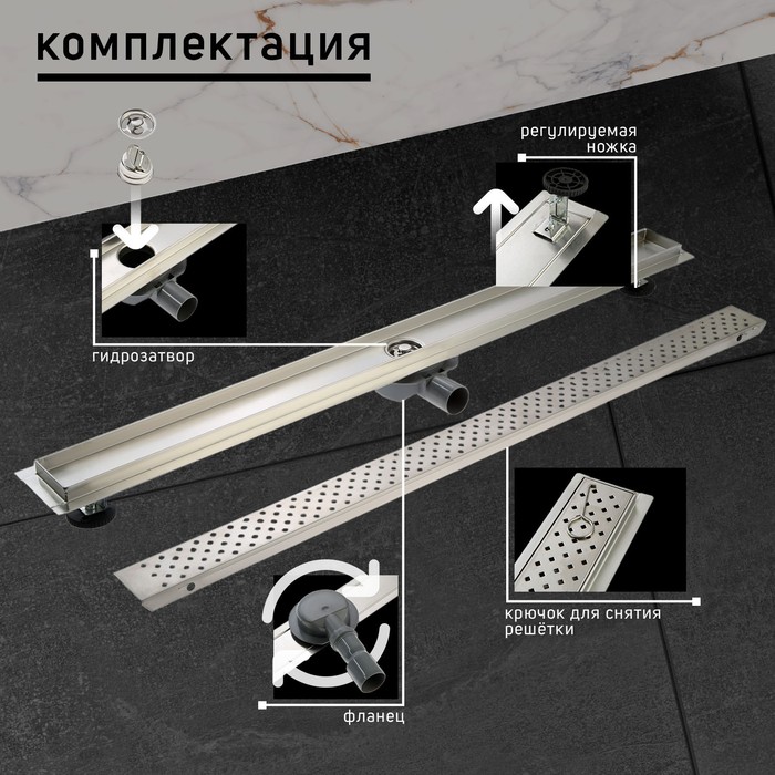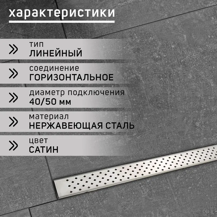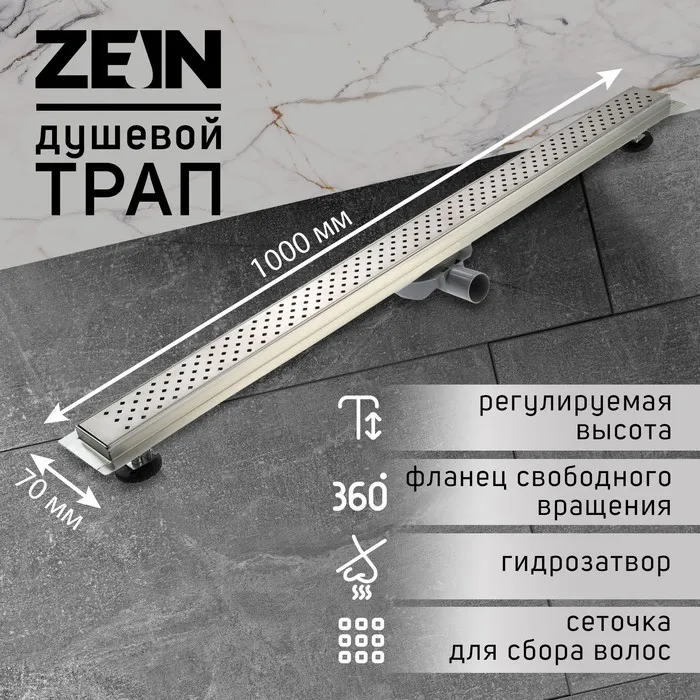 Трап ZEIN engr, с фланцем свободного вращ 360°, 7×100 см, d=40/50 мм, нерж сталь, сатин — Характеристики