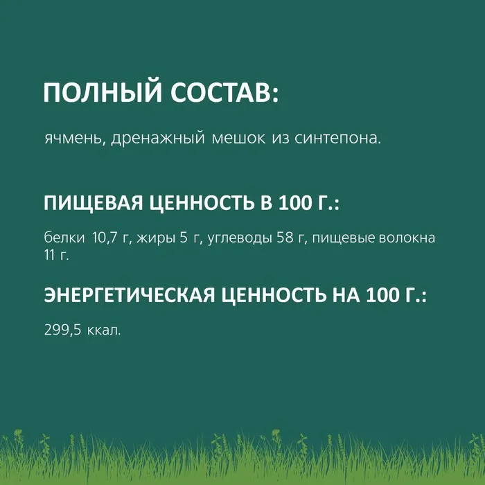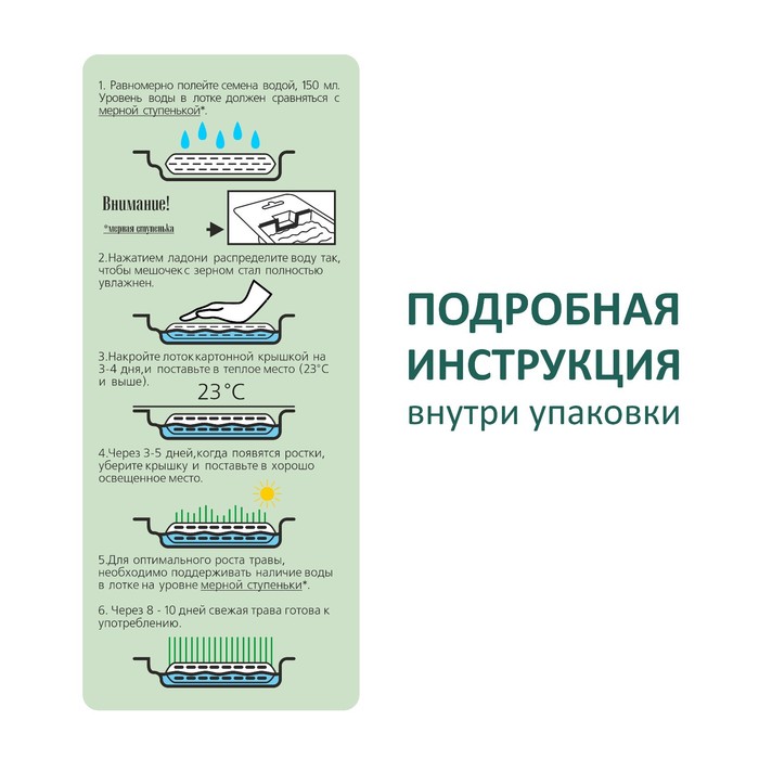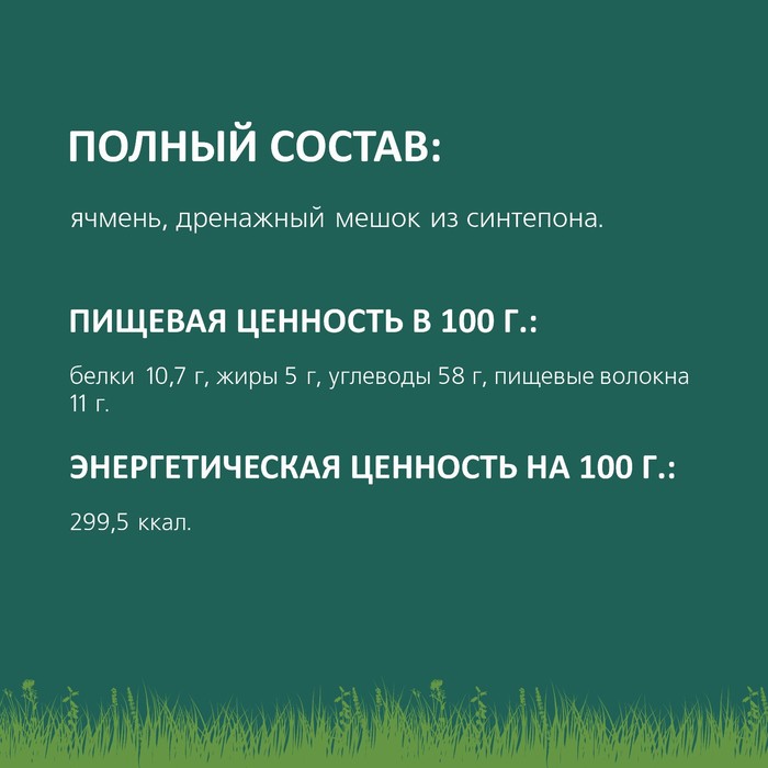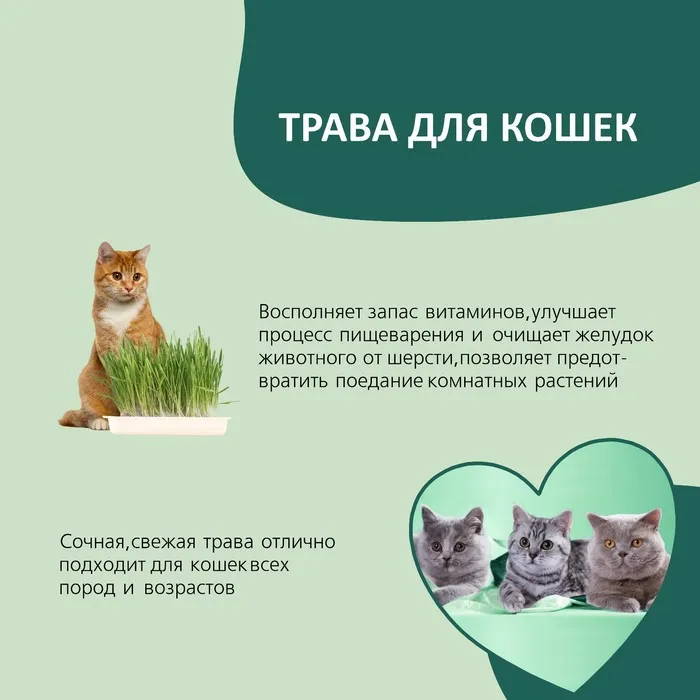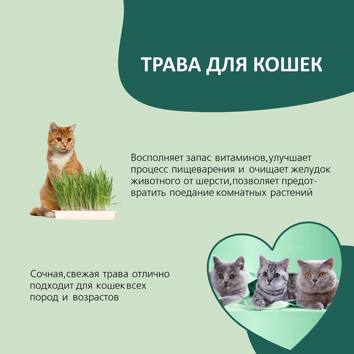 100% натуральный продукт, без использования искусственных субстратов. Технологичный дренажный мешок обеспечивает дренаж, а также способствует созданию тепличного эффекта для более эффективного роста семян. Свежепророщенная трава восполняет запас витаминов и фолиевой кислоты, улучшает процесс пищеварения и очищает желудок животного от шерсти. Удобство использования - после прорастания семян, в лотке не нужно делать дренажные отверстия и подставлять поддон, а в случае опрокидывания лотка синтепоновый мешок предотвращает рассыпание семян.