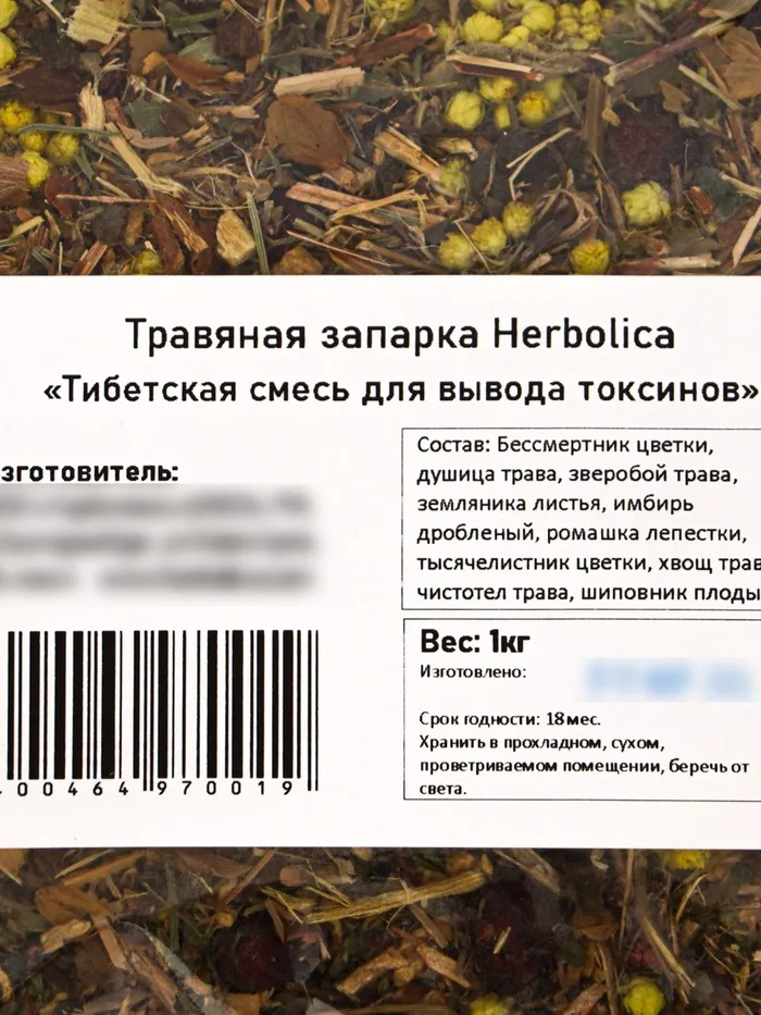 Травяная запарка для бани, сауны и кедровой бочки «Тибетская смесь для вывода токсинов», 1 кг — Характеристики