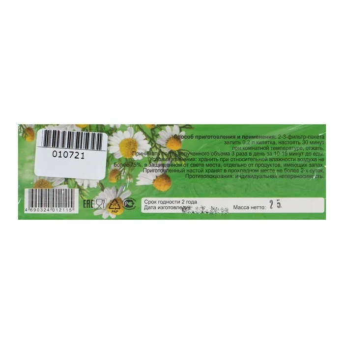 Способ применения: 2-3 фильтр-пакета залить 200 мл кипятка, настоять 30 мин. при комнатной температуре, отжать. Принимать по 1/3 стакана 3 раза в день за 10-15 мин. до еды.